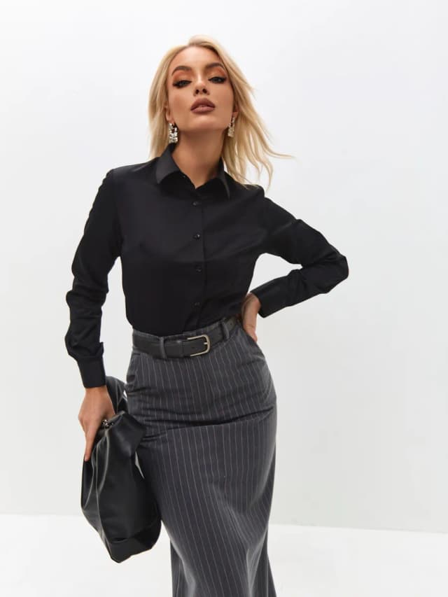 Блузка атласная офисная классическая с длинным рукавом