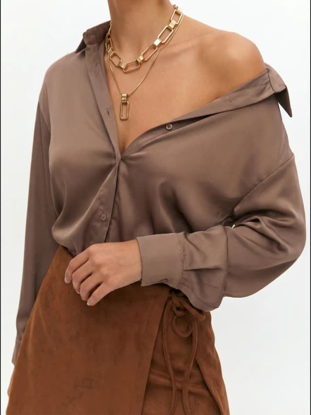 Рубашка шелковая оверсайз блузка для школы и офиса