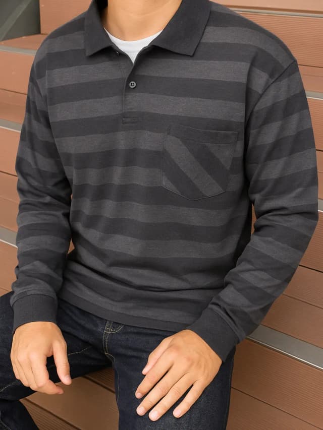 Лонгслив поло с длинным рукавом на пуговицах с принтом