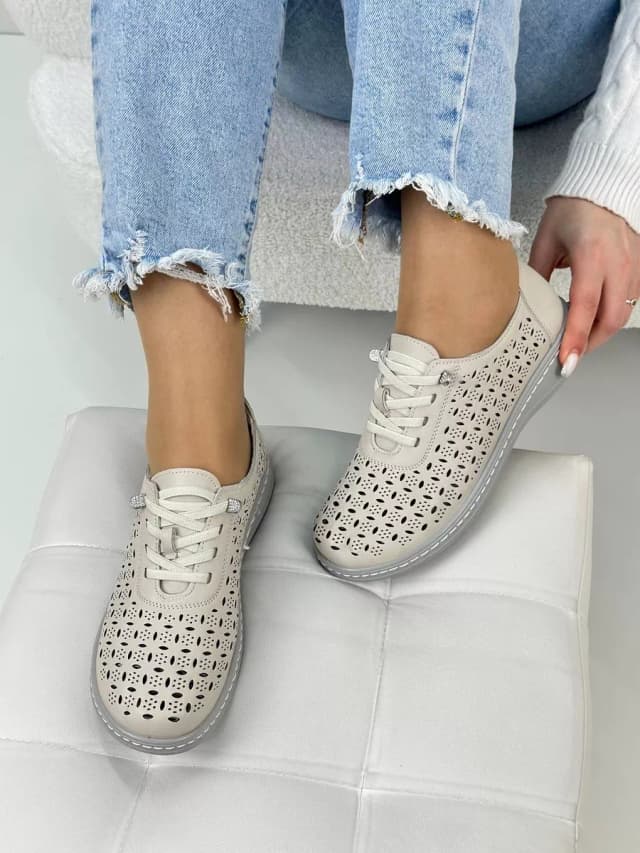 мокасины женские весна-лето кожаные с перфорацией дышащие