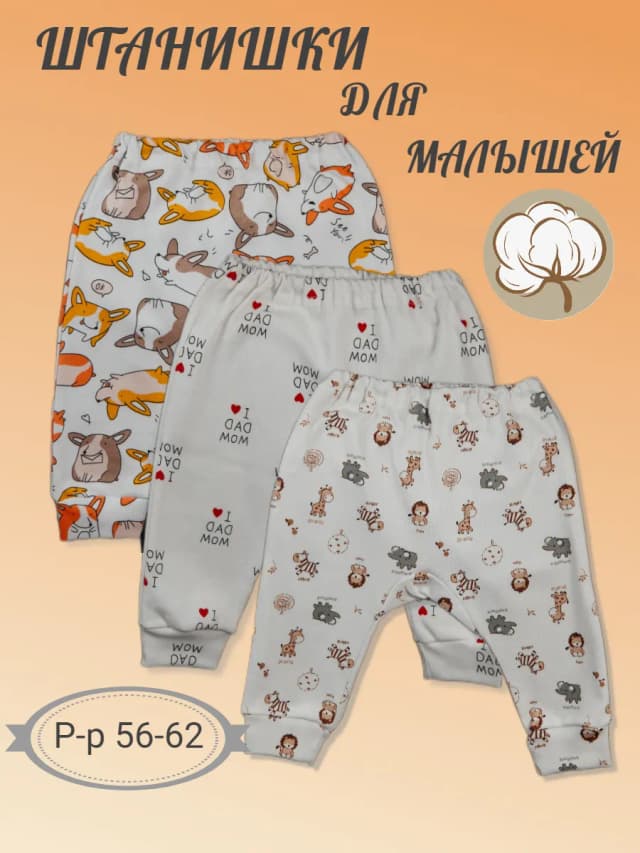 Штанишки на рибане для мальчика, ассорти 3 штуки кулирка