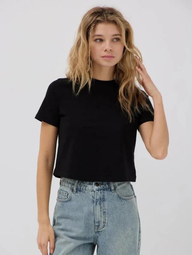 Футболка спортивная черная укороченная