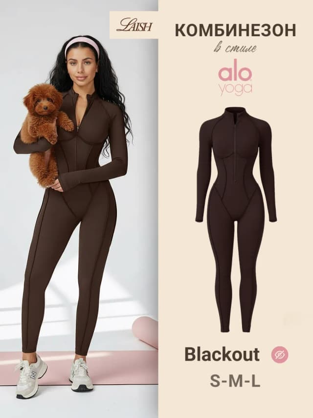 Комбинезон спортивный для фитнеса и йоги на молнии
