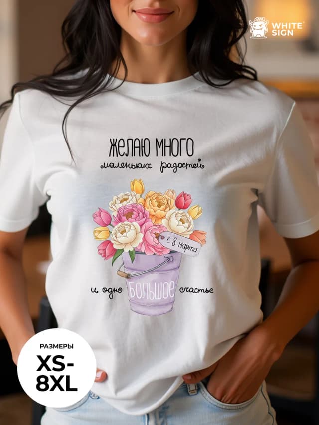 Футболка нарядная на 8 Марта с букетом цветов хлопок