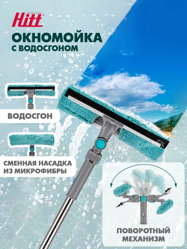 Швабра для окон, окномойка с телескопической ручкой 120 см