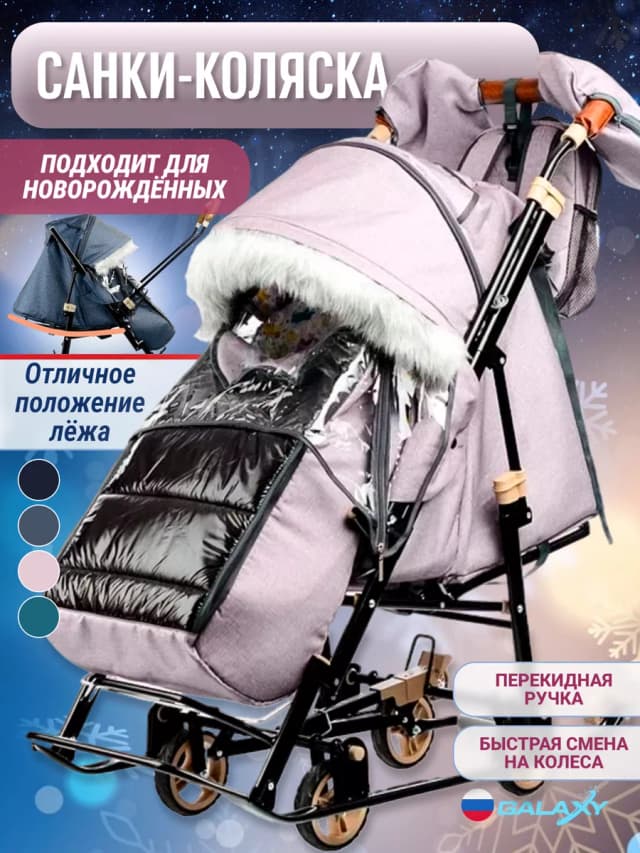 Санки с колесами коляска зимняя для девочек