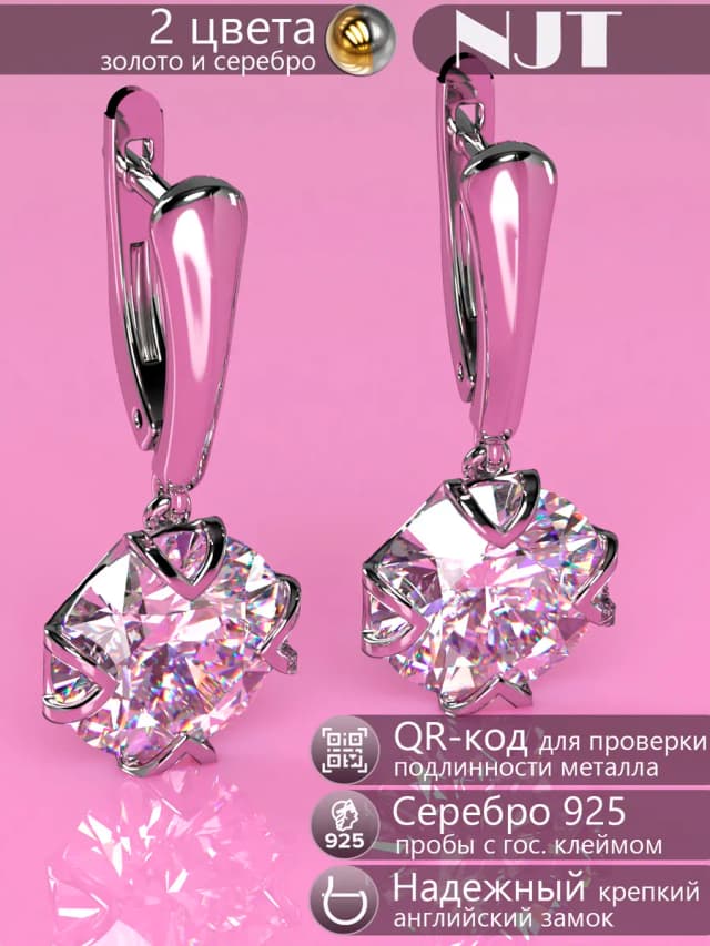 Серьги с большим кристаллом и английским замком