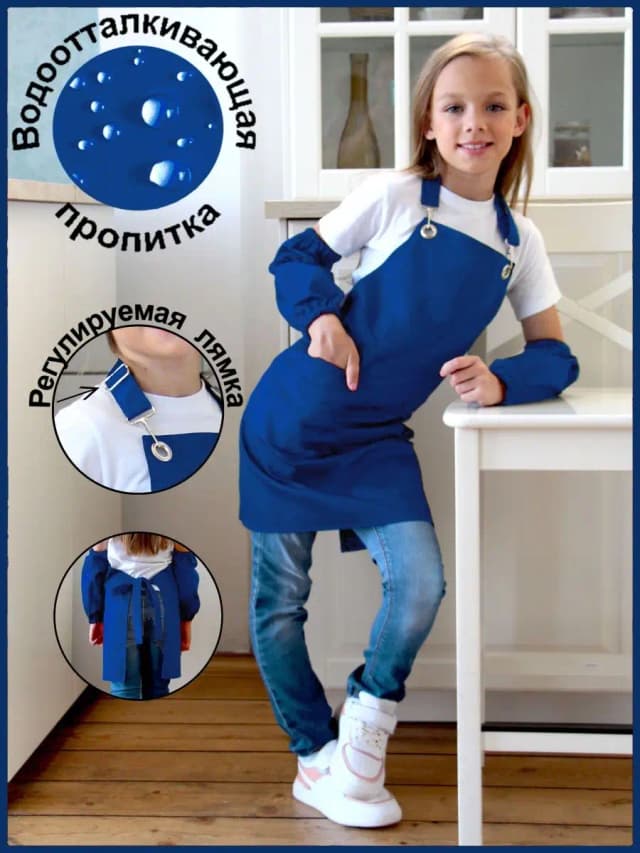 Фартук с нарукавниками 54*45см, 3 кармана, синий