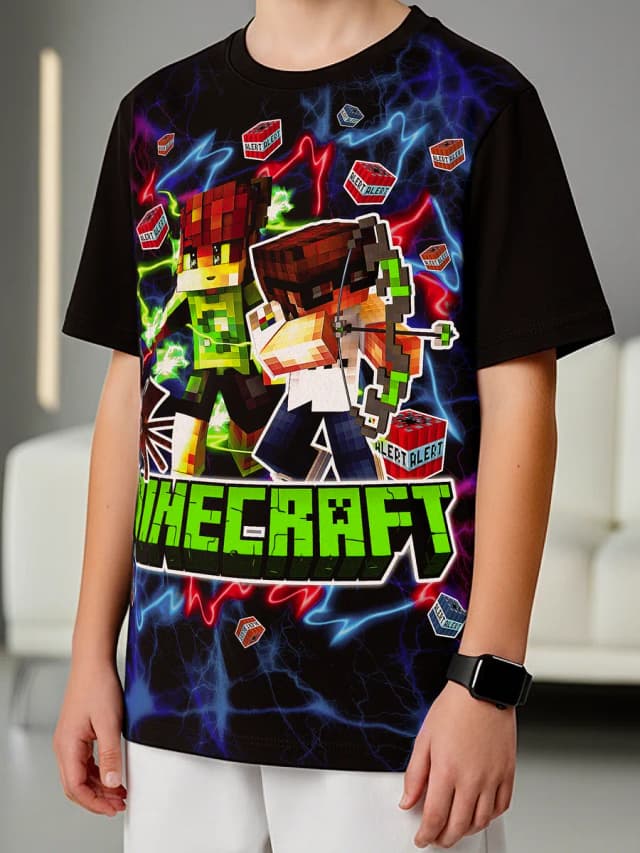 Футболка повседневная хлопок с принтом Майнкрафт светящаяся