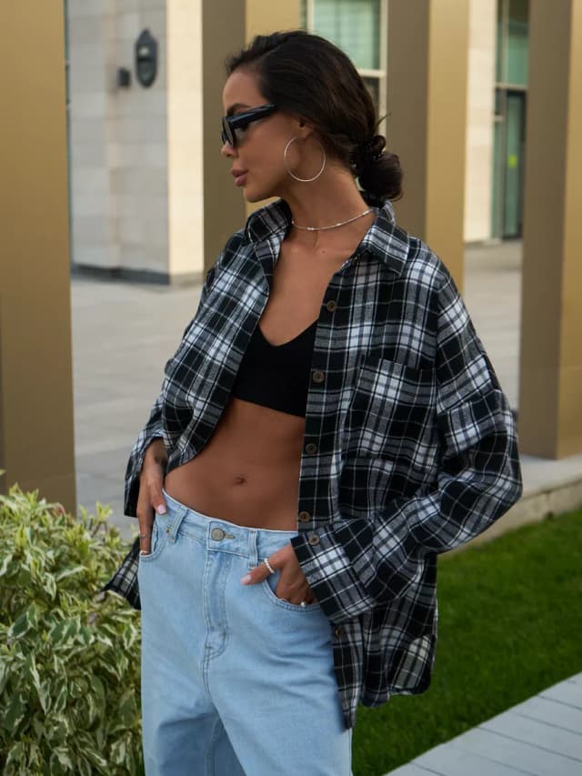 Рубашка в клетку оверсайз фланелевая укороченная летняя