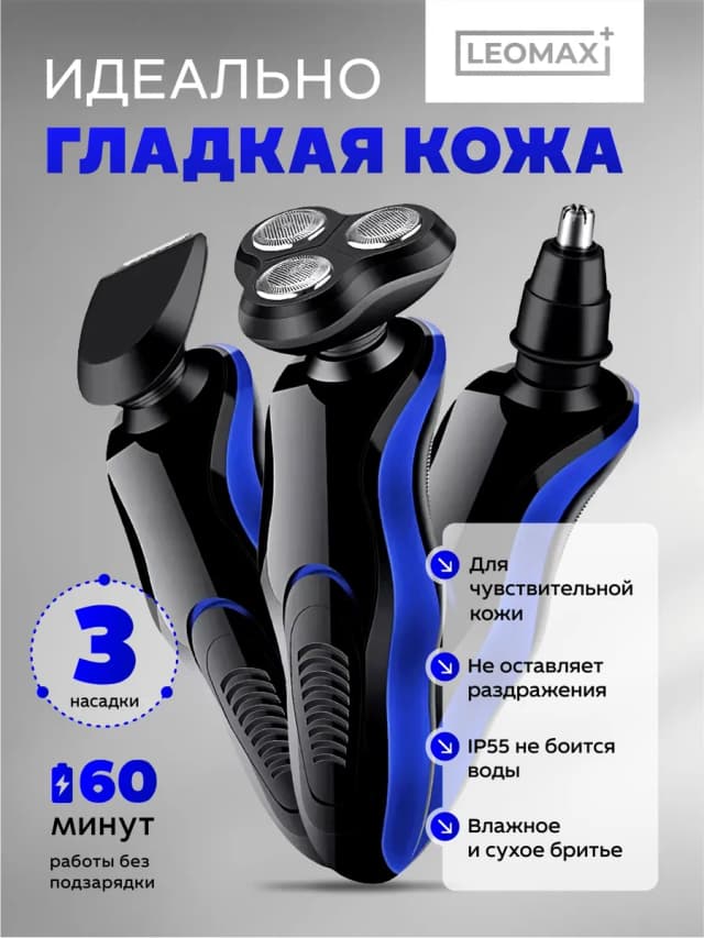 Электробритва для бороды и усов 3 в 1 триммер с насадками