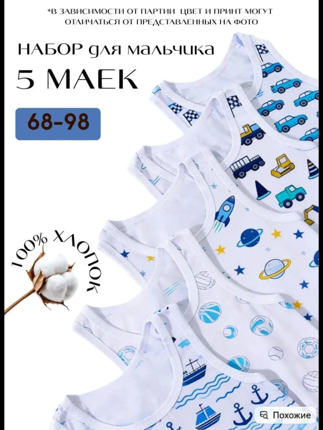 Майки бельевые набор 5 штук летние хб в садик, нательные