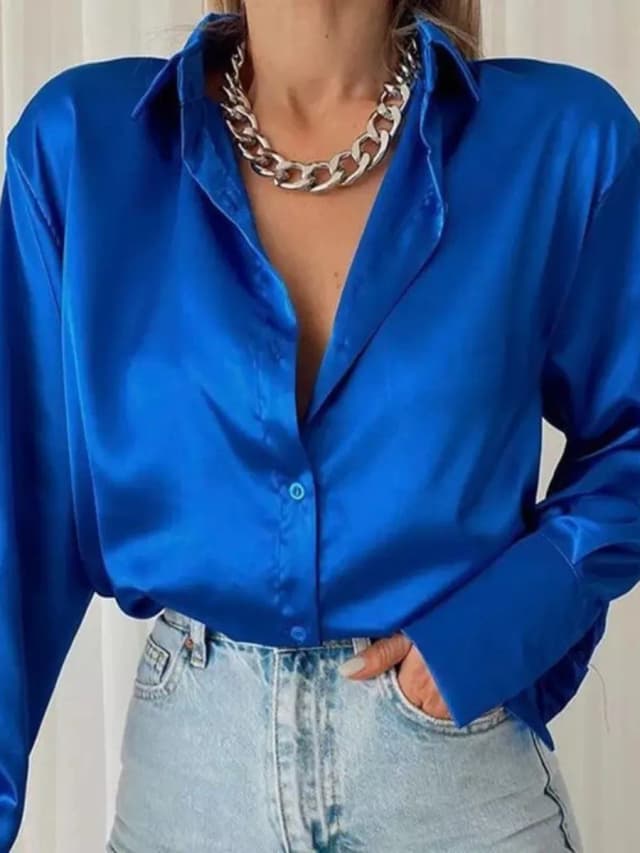 Блузка атласная офисная классическая с длинным рукавом