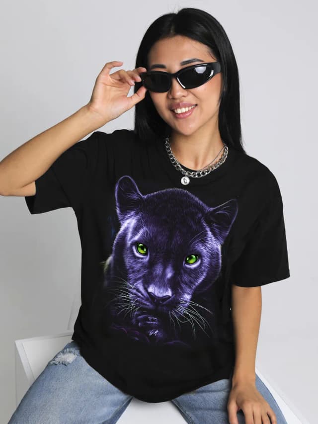 Футболка с принтом Пантера модная хлопок