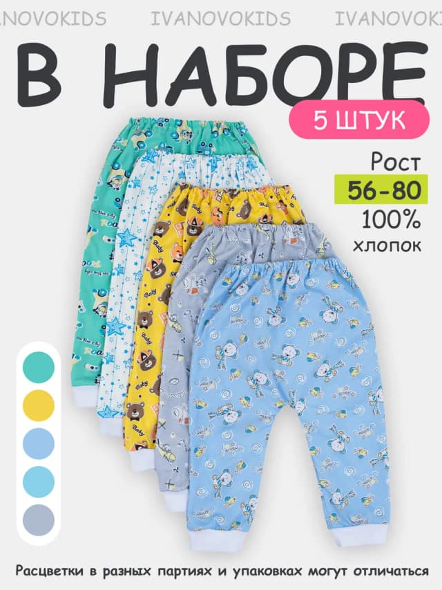Штанишки брюки домашние для новорожденных набор 5 шт