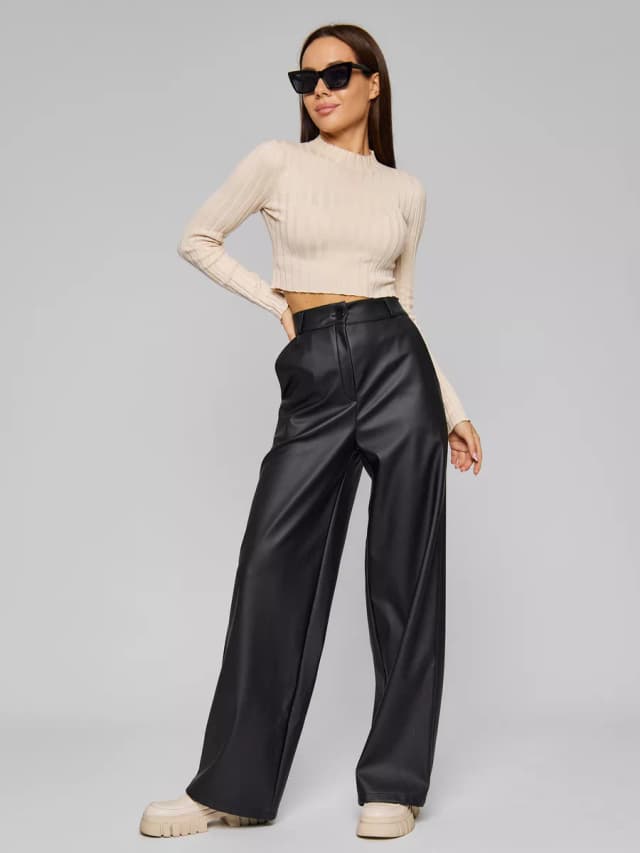 Брюки классические палаццо кожаные матовые утепленные