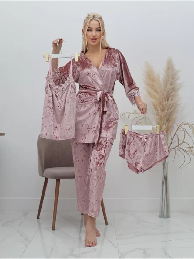 Пижама тройка с шортами и халатом домашняя леопардовая