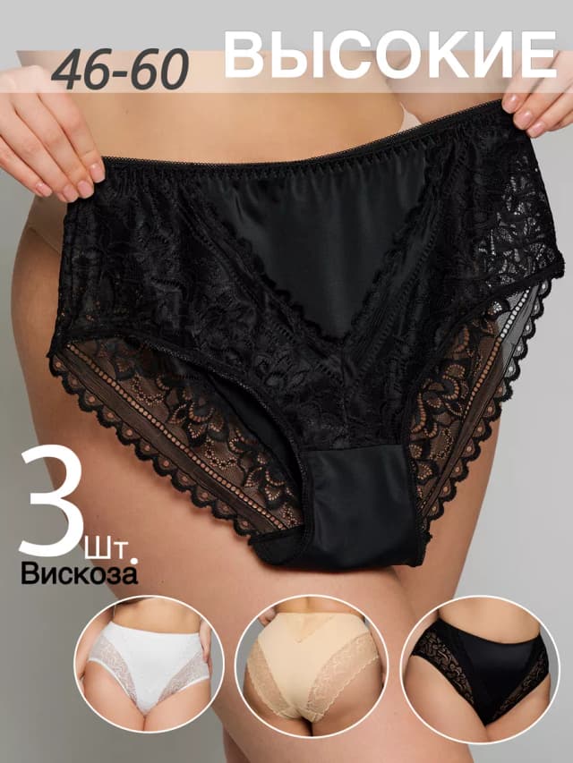 Трусы с высокой посадкой больших размеров набор 3 шт