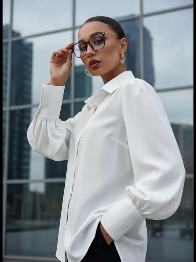 Классическая белая блузка рубашка с объемными рукавами