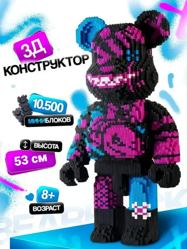 Конструктор 3д для мальчиков и девочек из миниблоков медведь