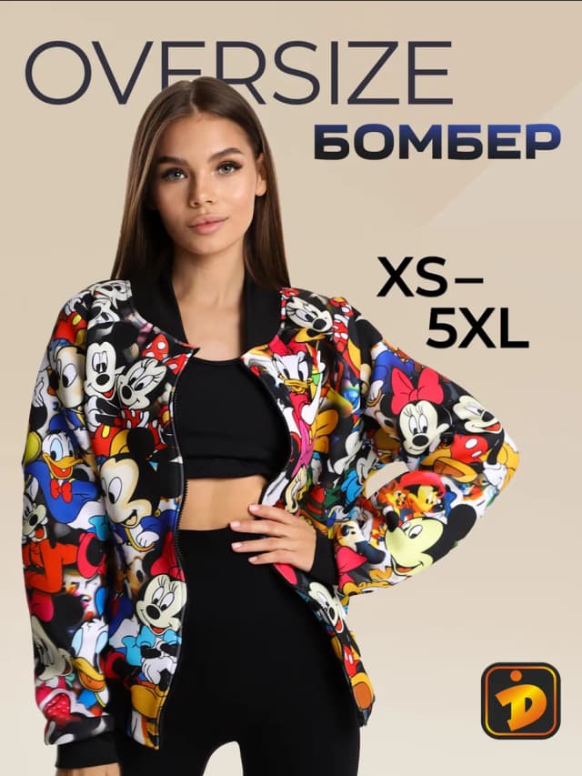 Толстовка на молнии оверсайз с принтом Микки Маус Disney