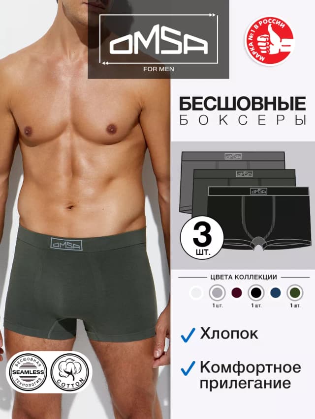 Трусы боксеры бесшовные из хлопка набор 3 штуки