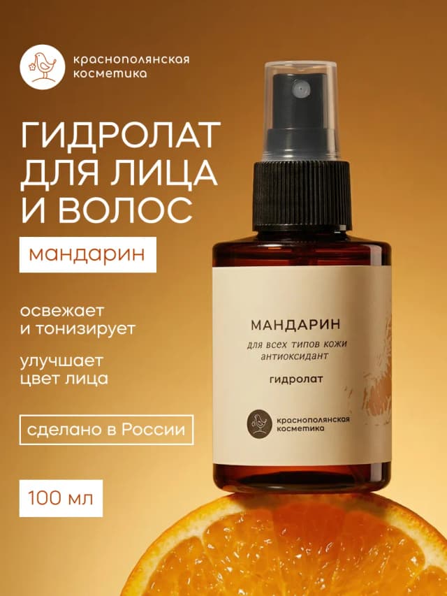 Гидролат для лица и волос увлажняющий натуральный, мандарин
