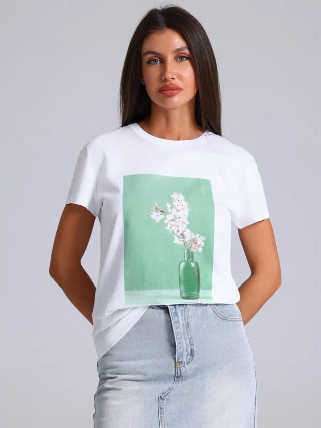 Футболка белая с принтом хлопок 100%