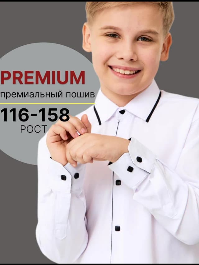 Белая рубашка для мальчика с длинным рукавом на кнопках