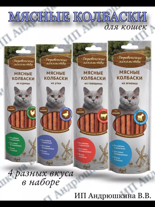 Набор мясных колбасок для кошек 4 уп