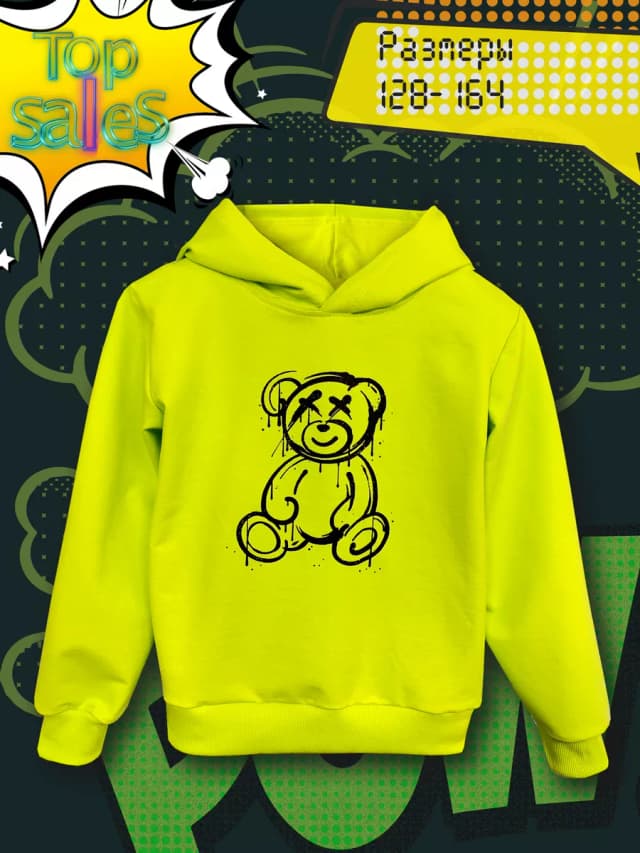 Толстовка с капюшоном 128-164 р-р с мишкой лабубу