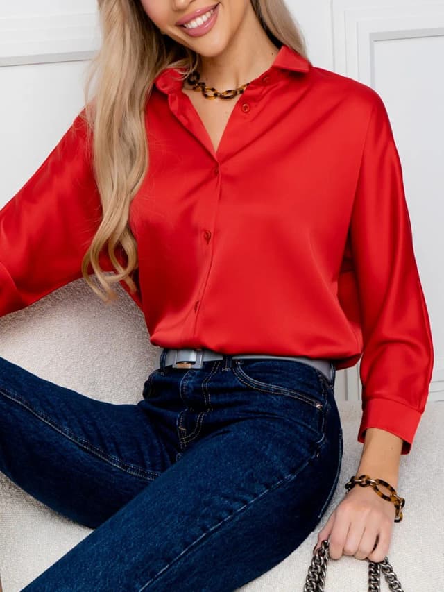 Блузка атласная офисная классическая с длинным рукавом