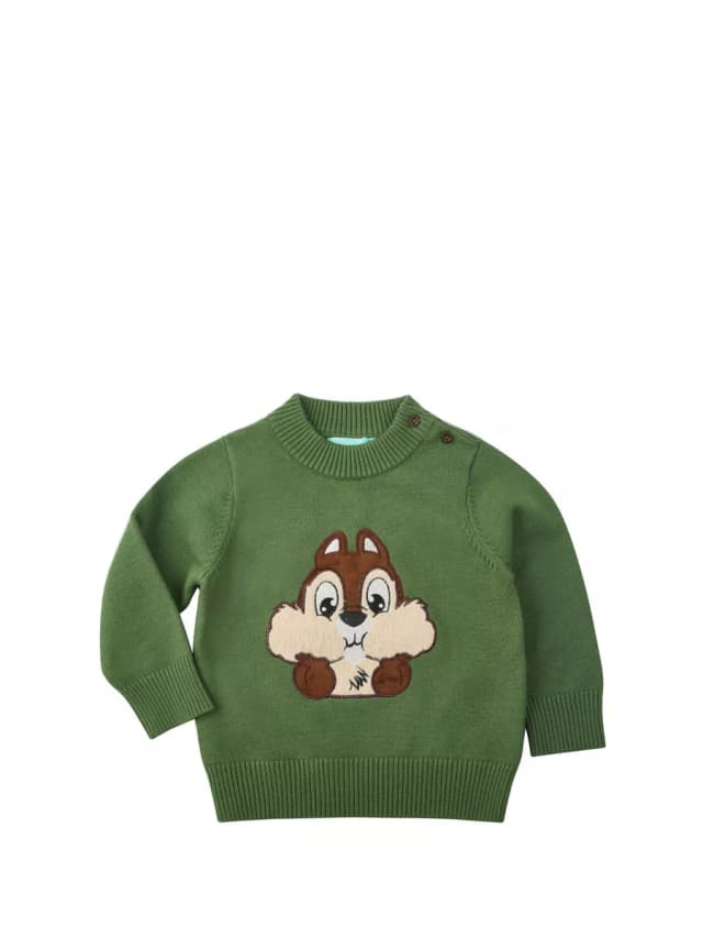 Свитер для малыша вязаный зеленый с принтом