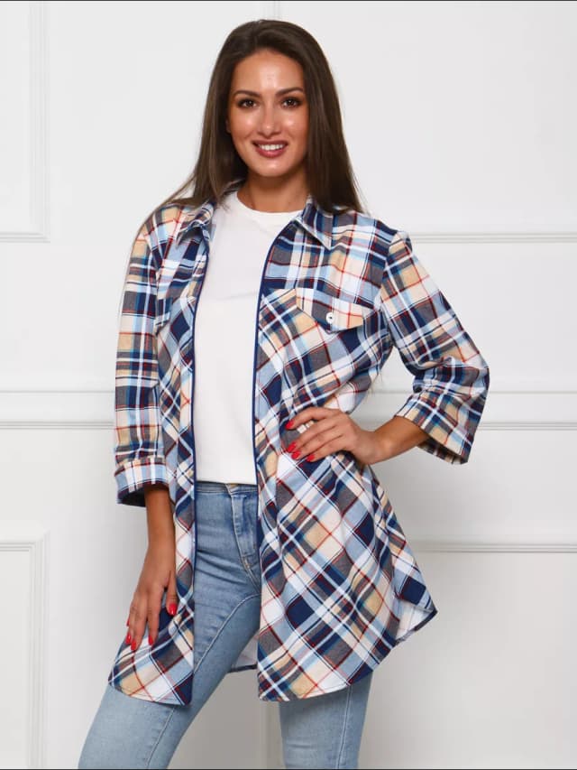Удлиненная рубашка осенняя оверсайз в клетку теплая