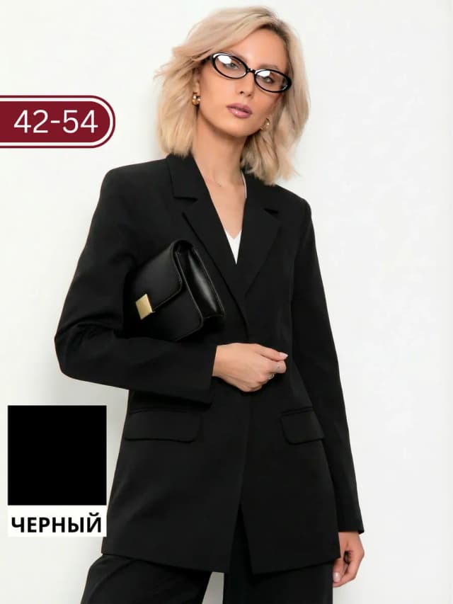 Пиджак женский черный оверсайз удлиненный