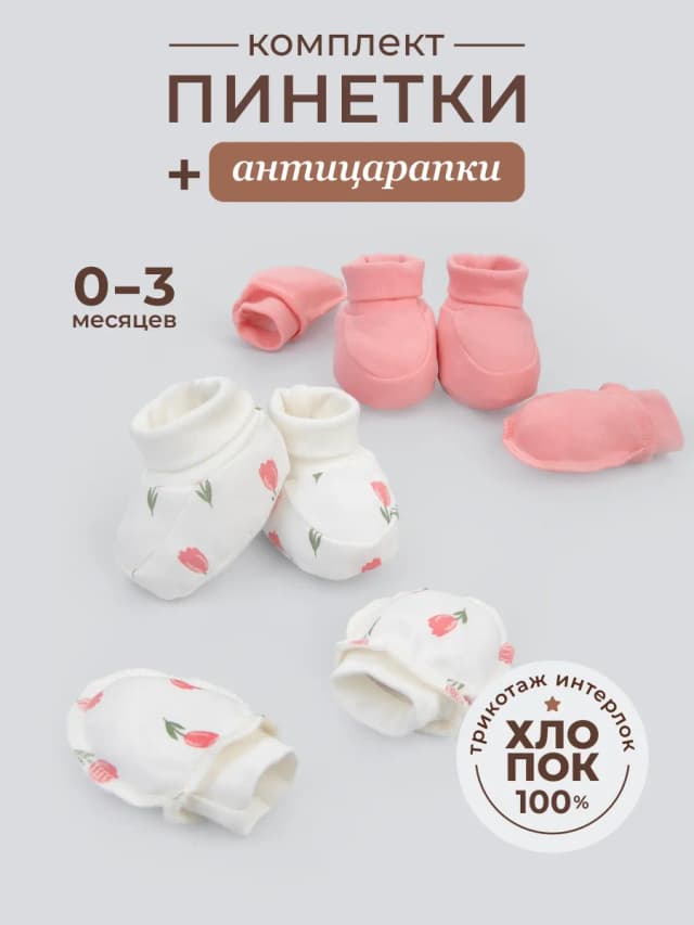 Комплект пинеток и антицарапок для новорожденного хлопок