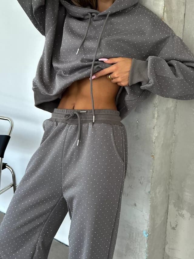 Спортивный костюм оверсайз без начеса в стразы