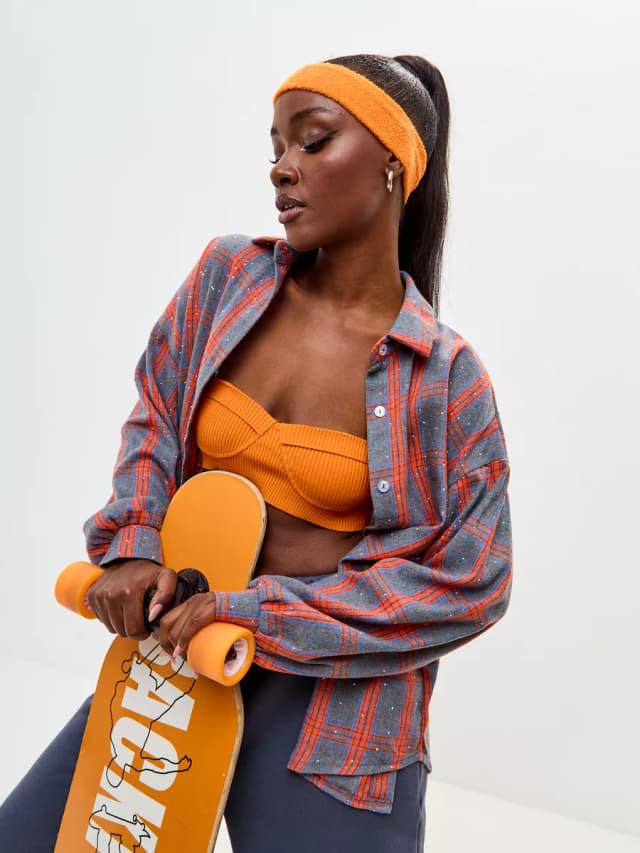 Рубашка в клетку оверсайз удлиненная теплая фланелевая