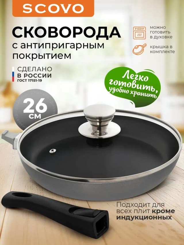 Сковорода с крышкой и съемной ручкой 26 см универсальная