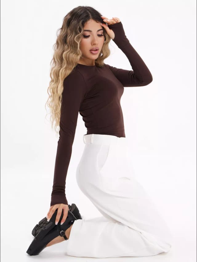 Лонгслив обтягивающий кофта с вырезом для пальца СКИМС