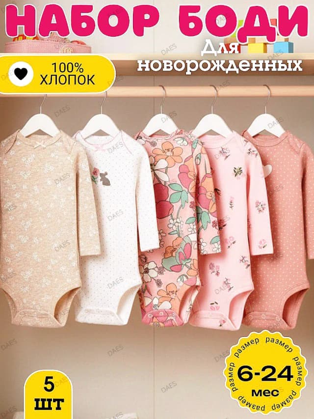 Боди для новорожденных с длинным рукавом 5 штук