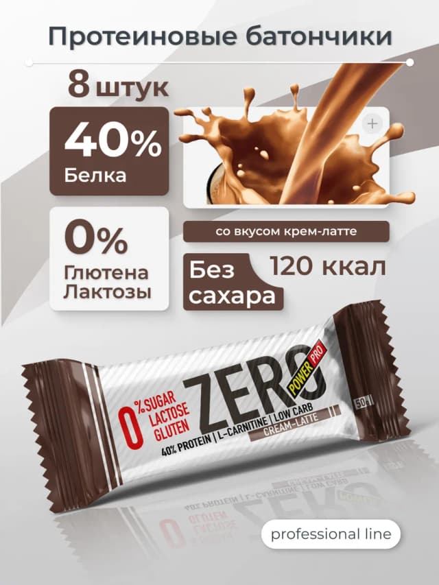 Протеиновые батончики без сахара ZERO крем-латте, 8 шт
