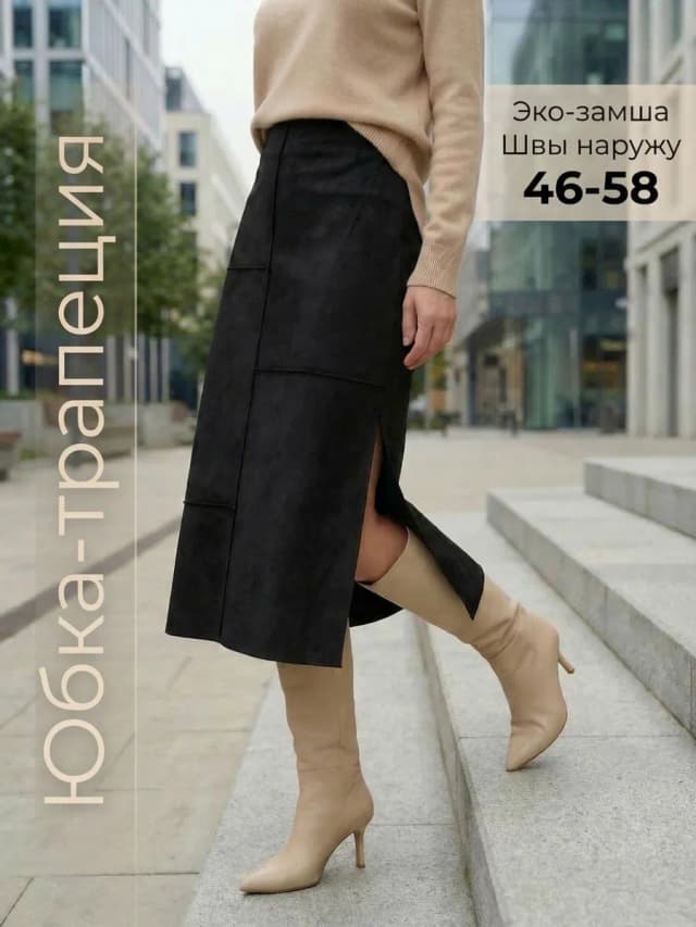 Юбка трапеция трикотажная замша