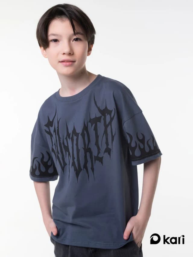 Футболка для мальчика оверсайз макси серая с принтом