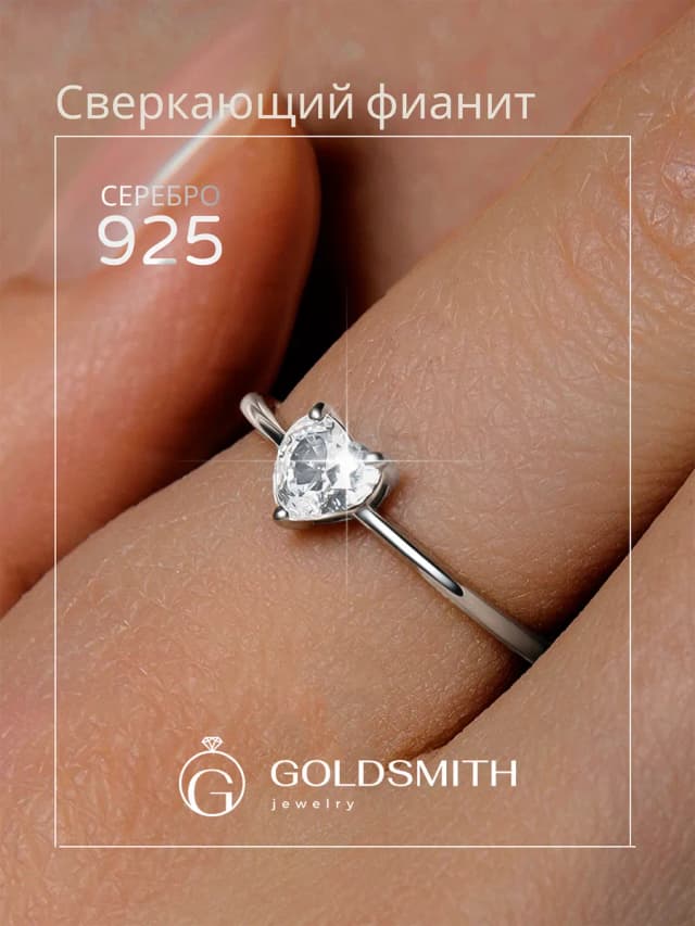 Кольцо серебро сердце