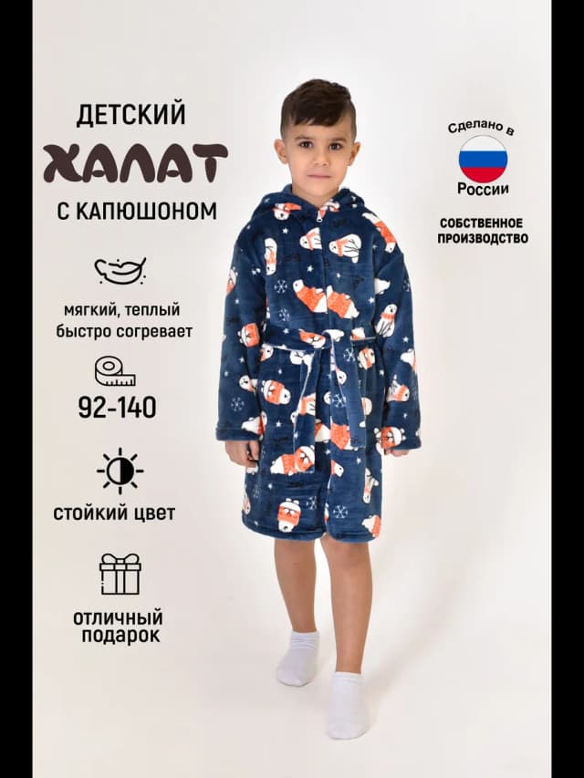 Халат для мальчика девочки домашний банный теплый капюшон
