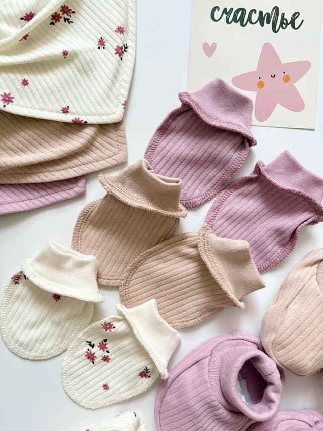 Рукавички для новорожденных антицарапки 0-3 на резинке набор