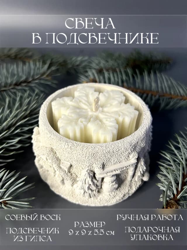 Свеча в гипсовом подсвечнике новогодняя