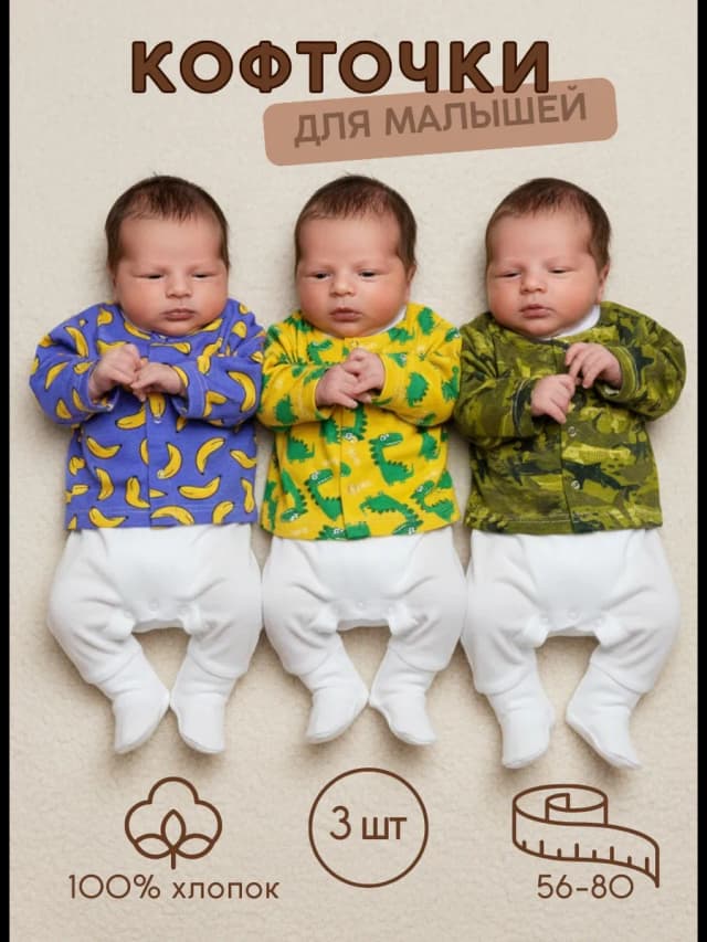 Кофточки распашонки для новорожденных на кнопках тонкие 3 шт