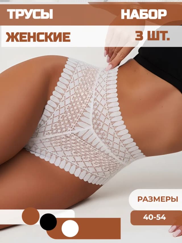 Трусы набор кружевные с высокой посадкой 3 шт